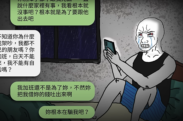 在年輕懵懂的年代裡,猴子靠著物質贏來的愛情,卻不知道最終也將因為物質而輸回去。這裡展現出主角幼稚不成熟的報復心態,似乎要靠著輿論壓力來毀掉欠錢不還又戴綠帽給他的粉紅妹,殊不知,看戲的鄉民比相挺的兄弟還多,在名為報復、實為討拍的貼文底下,猴子喚不回更多關注,因此陷入自噬的情緒泥沼之中...